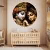 This Golden Round Frame painting with frame is made with high-gloss photo paper, featuring a unique glossy sparkle laminate that enhances the vibrancy and details of the artwork. Whether you are looking for a wall painting for living room or a wall painting for bedroom, this piece will add a touch of divinity and grace to any space. The high-quality finish ensures that this painting for wall decoration stands out.This Golden Round Frame painting big size is designed to fit seamlessly into your home decor, whether you are looking to enhance wall decor for bedroom or create an ambiance of peace in your living room. It is not just a Krishna Radha painting frame but also a meaningful symbol of love and devotion, making it one of the finest