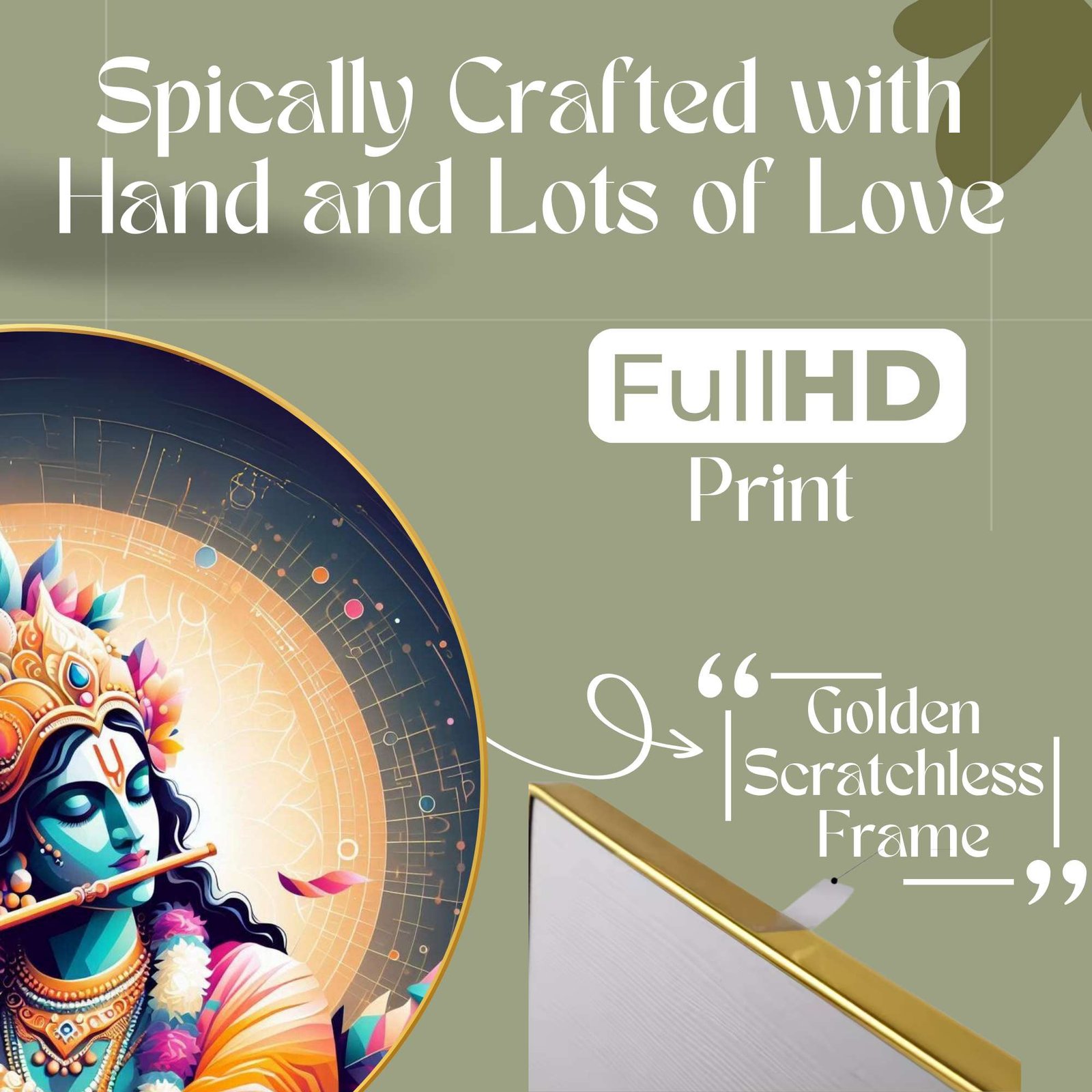 This Golden Round Frame painting with frame is made with high-gloss photo paper, featuring a unique glossy sparkle laminate that enhances the vibrancy and details of the artwork. Whether you are looking for a wall painting for living room or a wall painting for bedroom, this piece will add a touch of divinity and grace to any space. The high-quality finish ensures that this painting for wall decoration stands out.This Golden Round Frame painting big size is designed to fit seamlessly into your home decor, whether you are looking to enhance wall decor for bedroom or create an ambiance of peace in your living room. It is not just a Krishna Radha painting frame but also a meaningful symbol of love and devotion, making it one of the finest